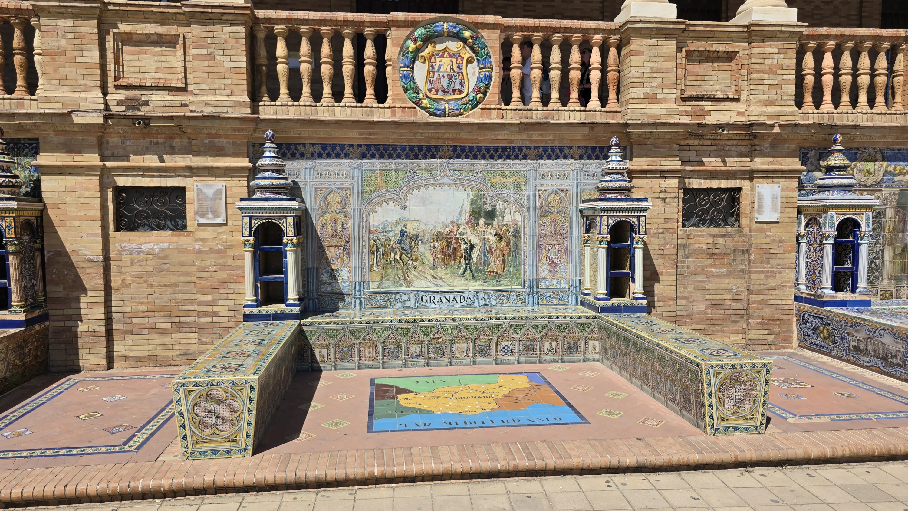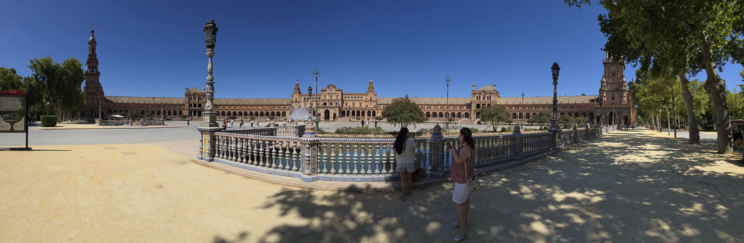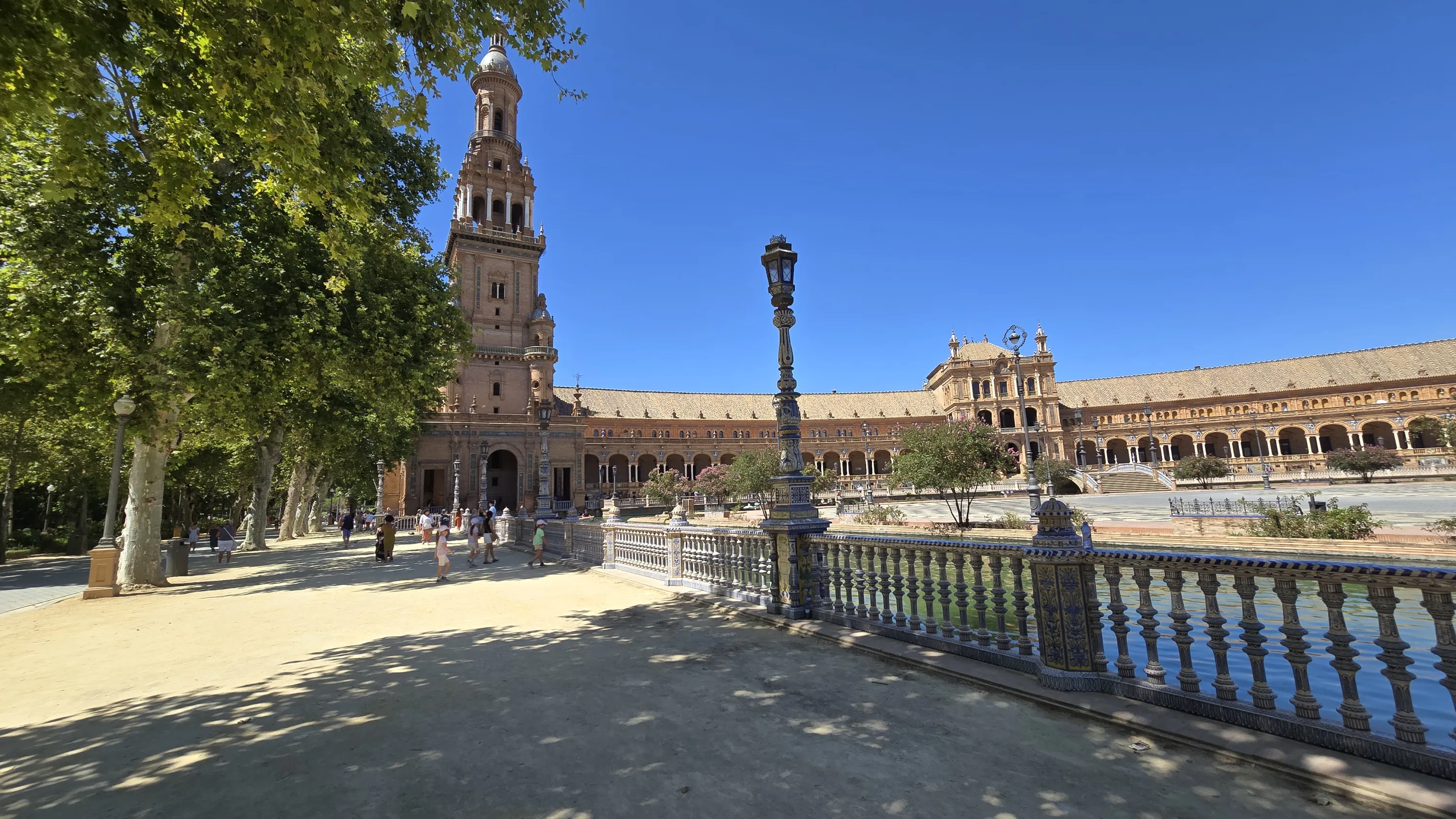 І нарешті третя візитівка Севільї — Площа Іспанії з архітектурним ансамблем у мавританському стилі у формі півкола, побудована напередодні Іберо-американської виставки у 1929-му. Вона настільки велика, що я не зміг сфотографувати її цілком: