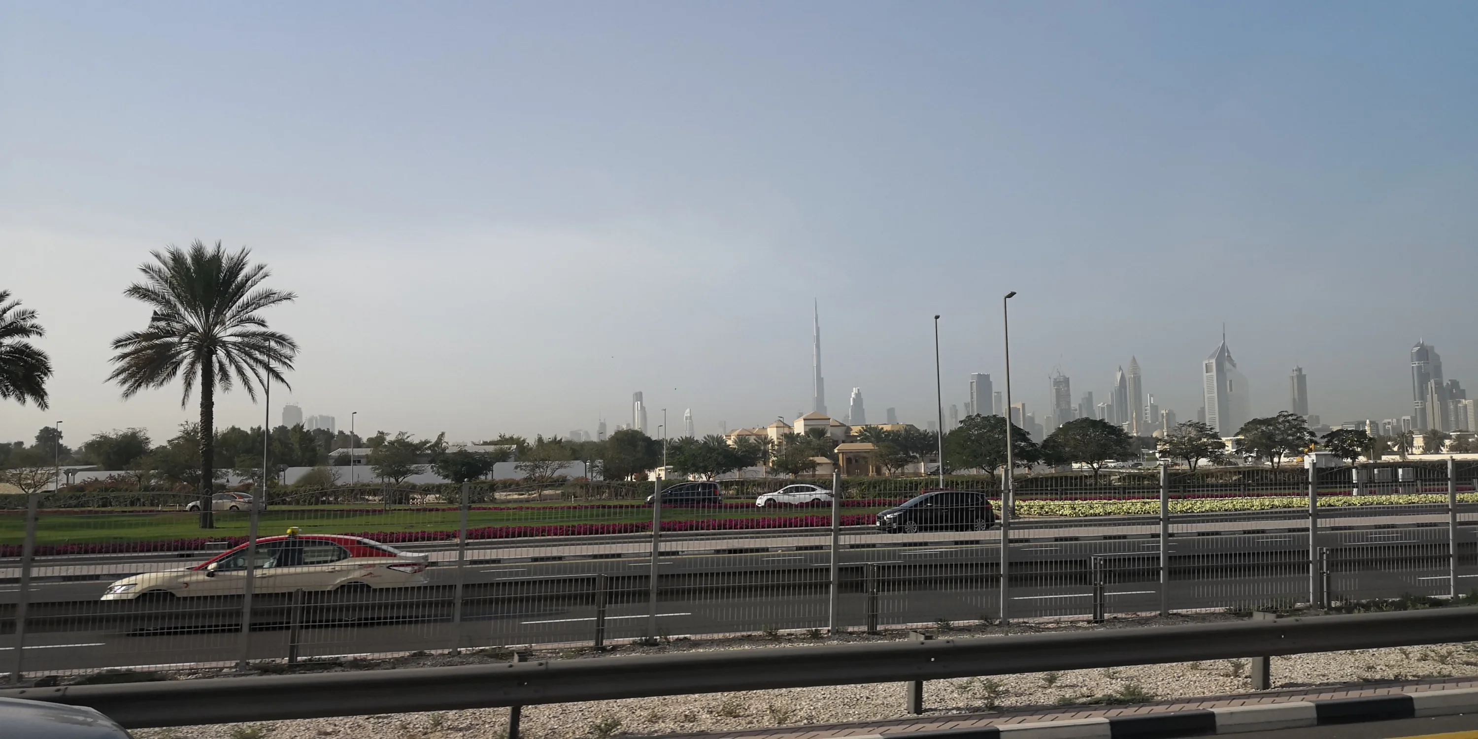 Ось ця широченна вулиця має назву Sheikh Zayed Road. Це головна транспортна артерія ОАЕ, яка тягнеться від Абу-Дабі аж до Рас-Ель-Хайми: