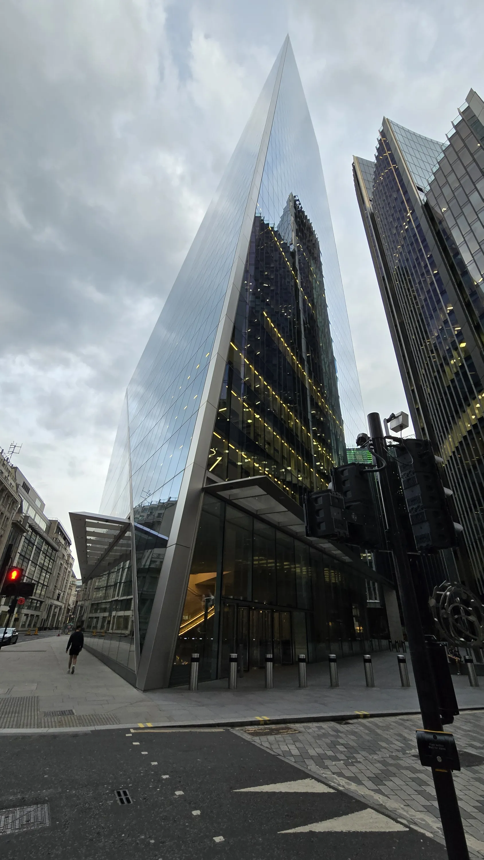 Хмарочос 20 Fenchurch Street, також відомий як Walkie-Talkie, зблизька не надто цікаво виглядає, але здалеку він цікавіший (фото здалеку буде нижче):
