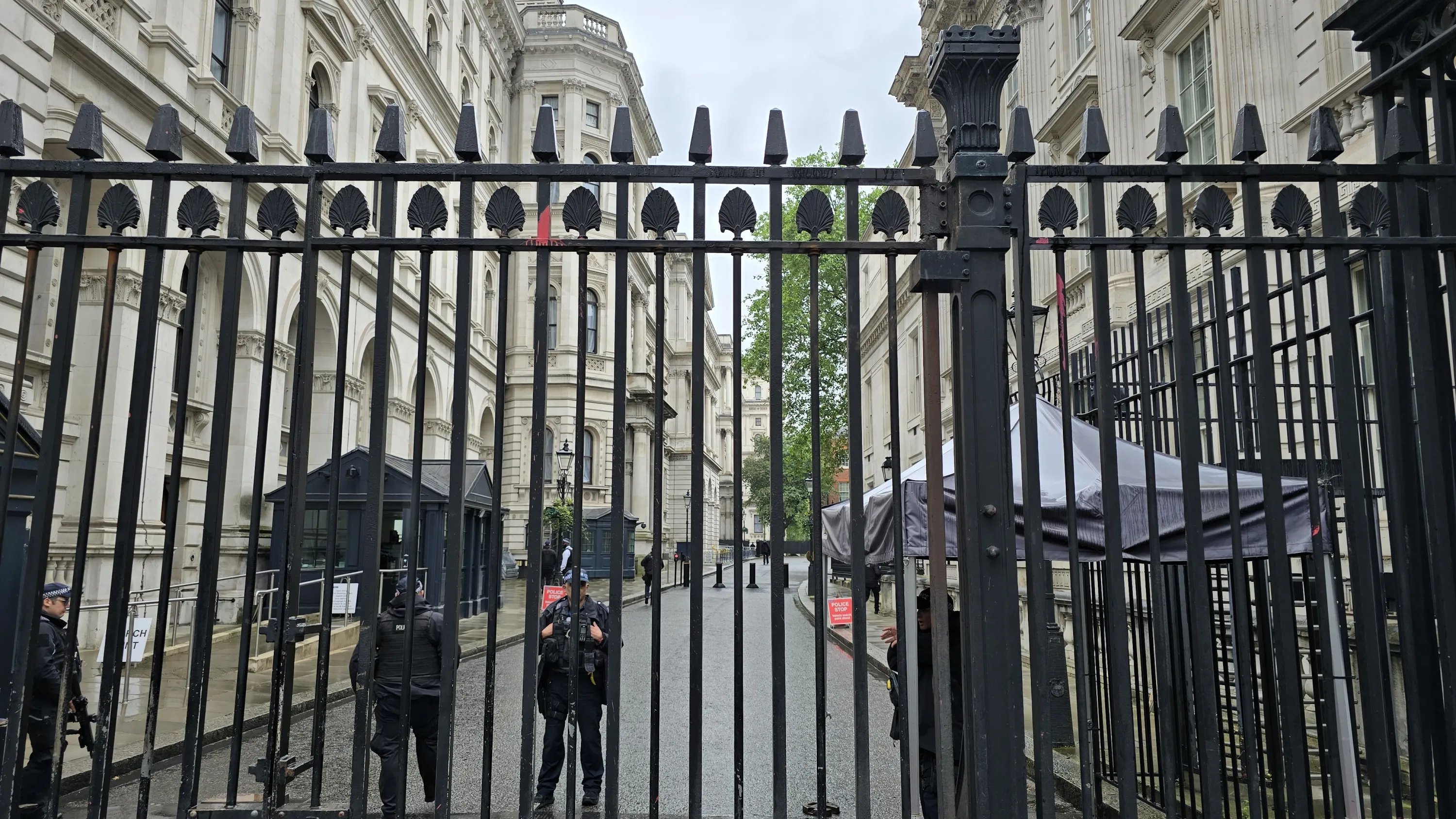 Вулиця Downing street, де знаходиться резиденція прем’єр-міністра, міністерство закордонних справ та деякі інші державні установи (на жаль, простих людей сюди не пускають):