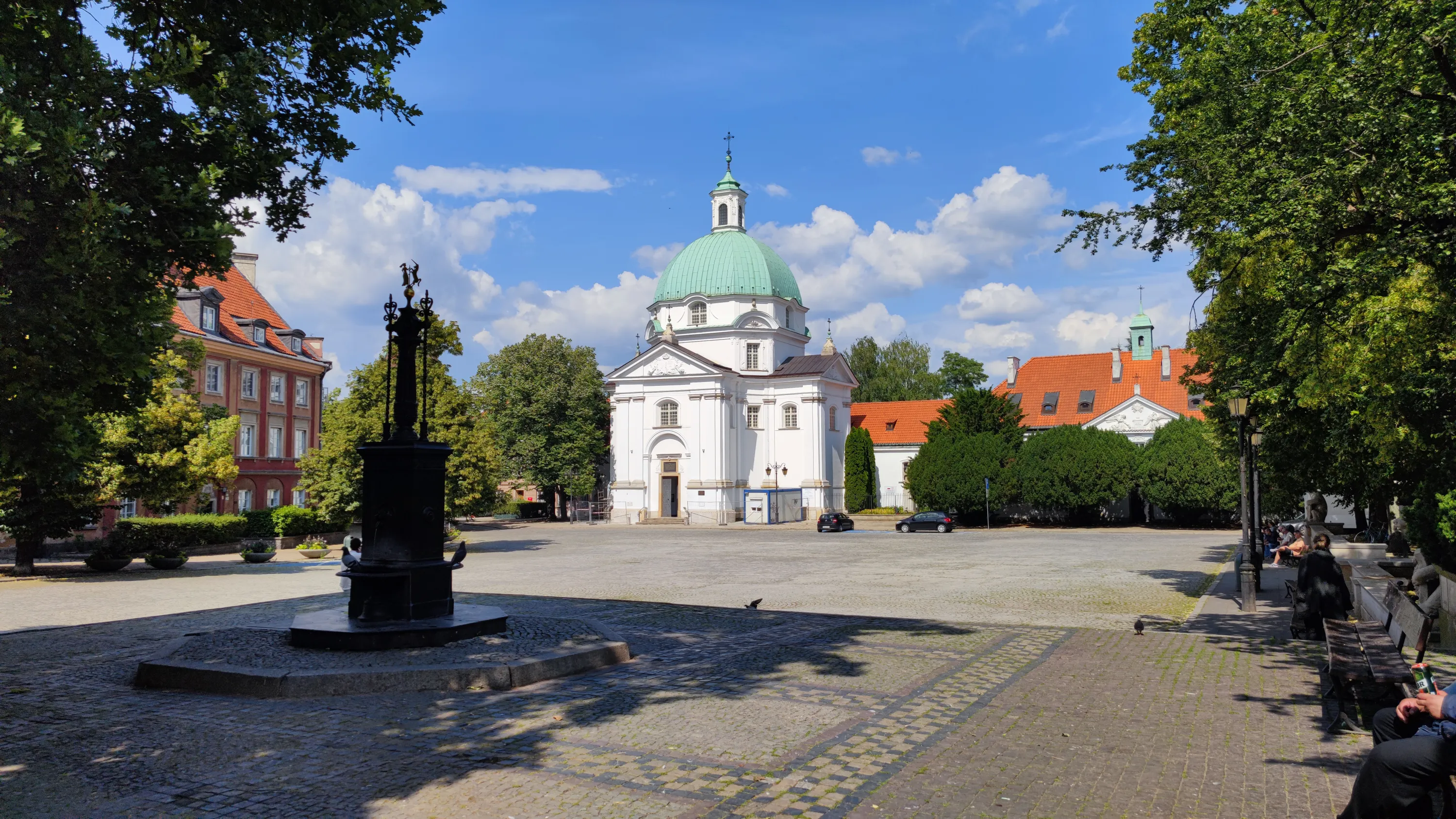 Замкова площа в південній частині переходить у пішохідну вулицю Краківське передмістя. На ній знаходиться неокласична церква святої Анни: