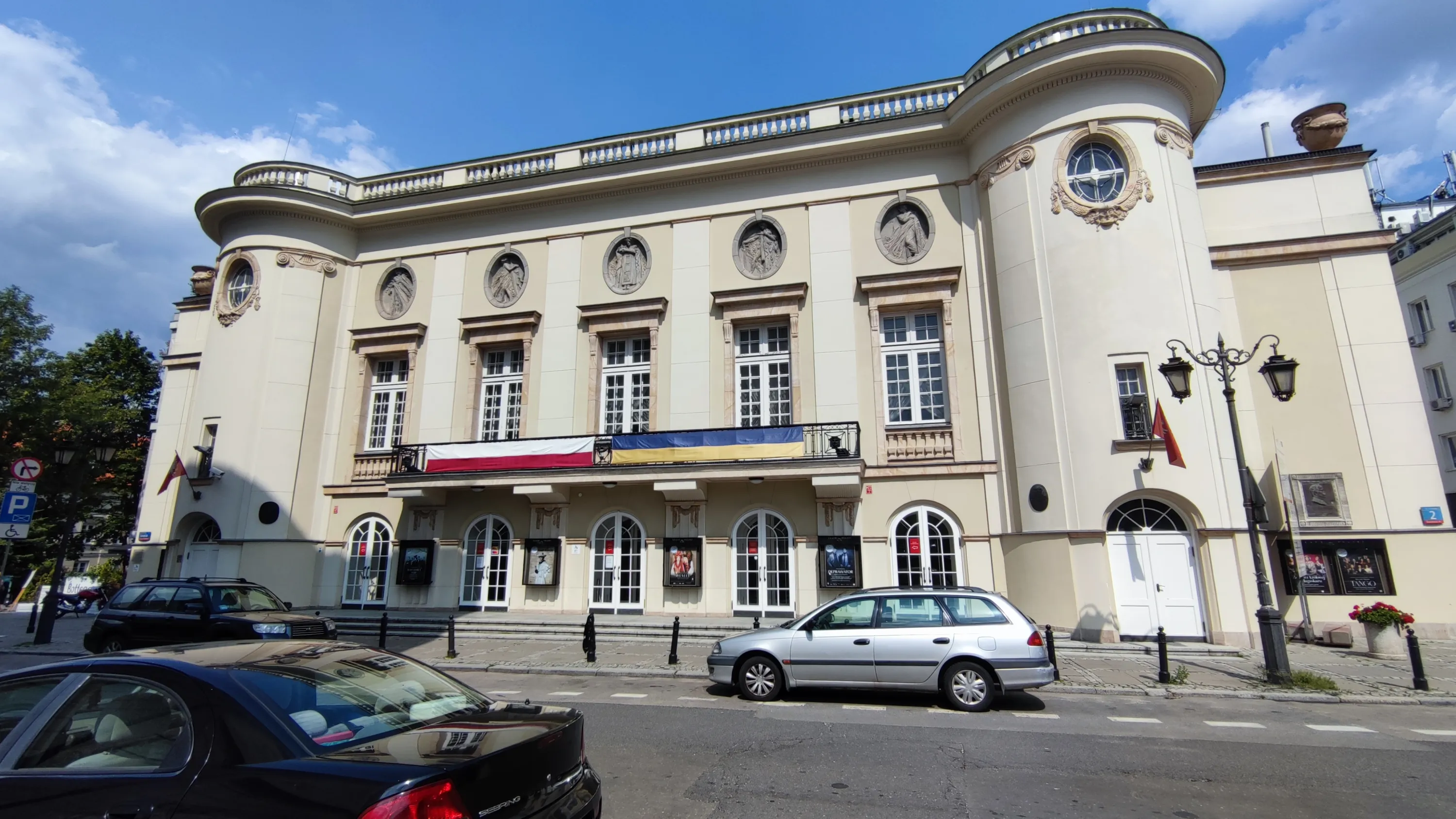 Театр імені Арнольда Шифмана, і тут також український прапор поряд з польським: