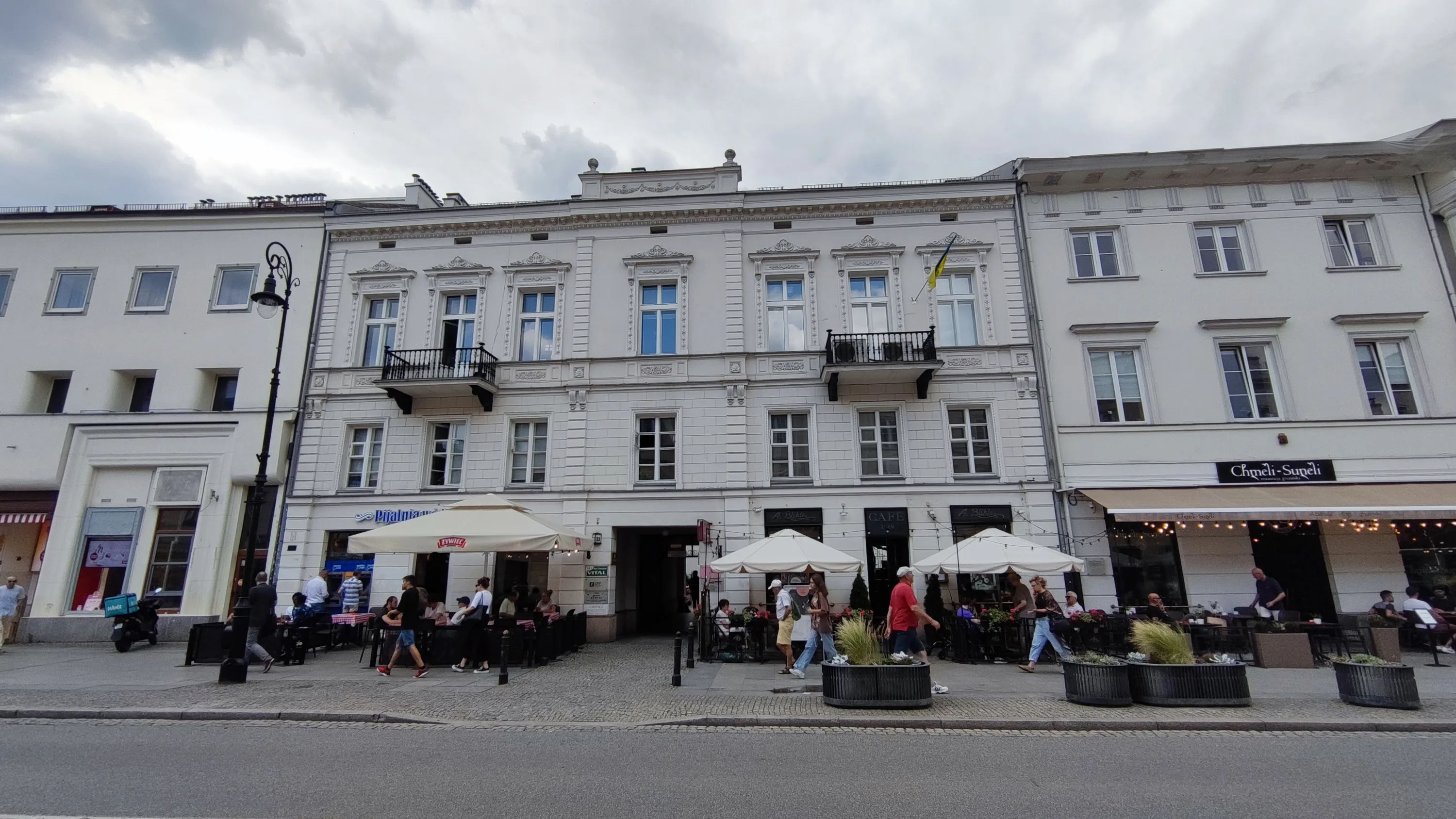Приблизно з цього місця вулиця Краківське передмістя переходить у вулицю Новий світ, яка під кінець XIX століття стала головним місцем для ведення торгівлі та бізнесу. Вона також була частиною колишньої Королівської Дороги, яка проходила від Старого міста до резиденції польського короля у Вілянуві. Під час Варшавського повстання вулиця була майже повністю знищена. Спочатку її планувалося відбудувати у довоєнному стилі модерн, однак згодом було вирішено виконати реконструкцію у неокласичному стилі зразка XIX століття. Сьогодні вулиця, як і до війни, заповнена ресторанами, магазинами та кав’ярнями: