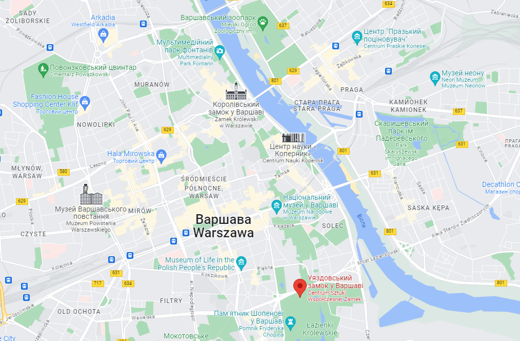 Варшава розділена Віслою на західну та східну частини, майже усі найцікавіші місця розташовані на західному березі: