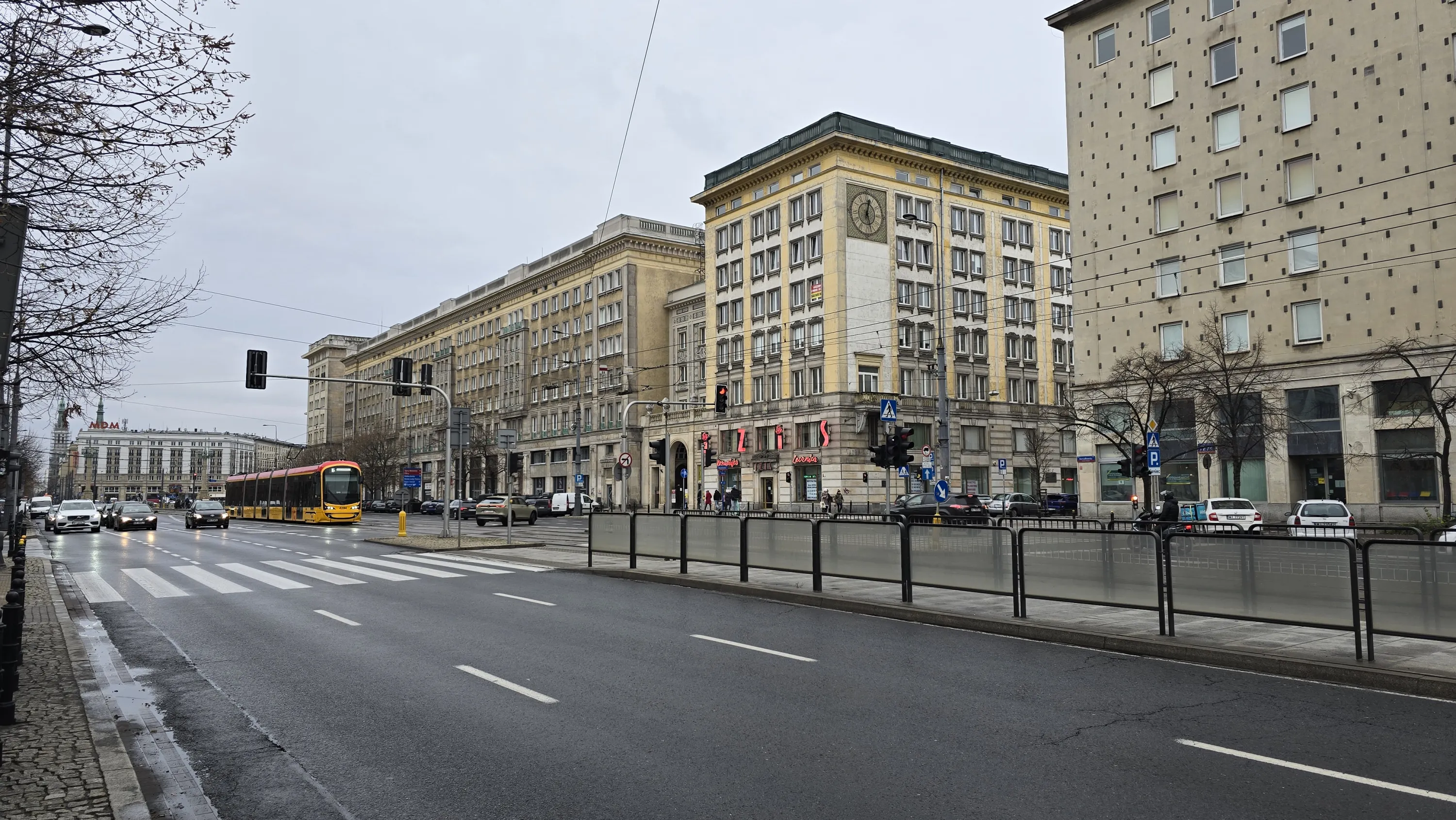 Будинки на вулиці Маршалківській нагадують про суворі комуністичні часи: