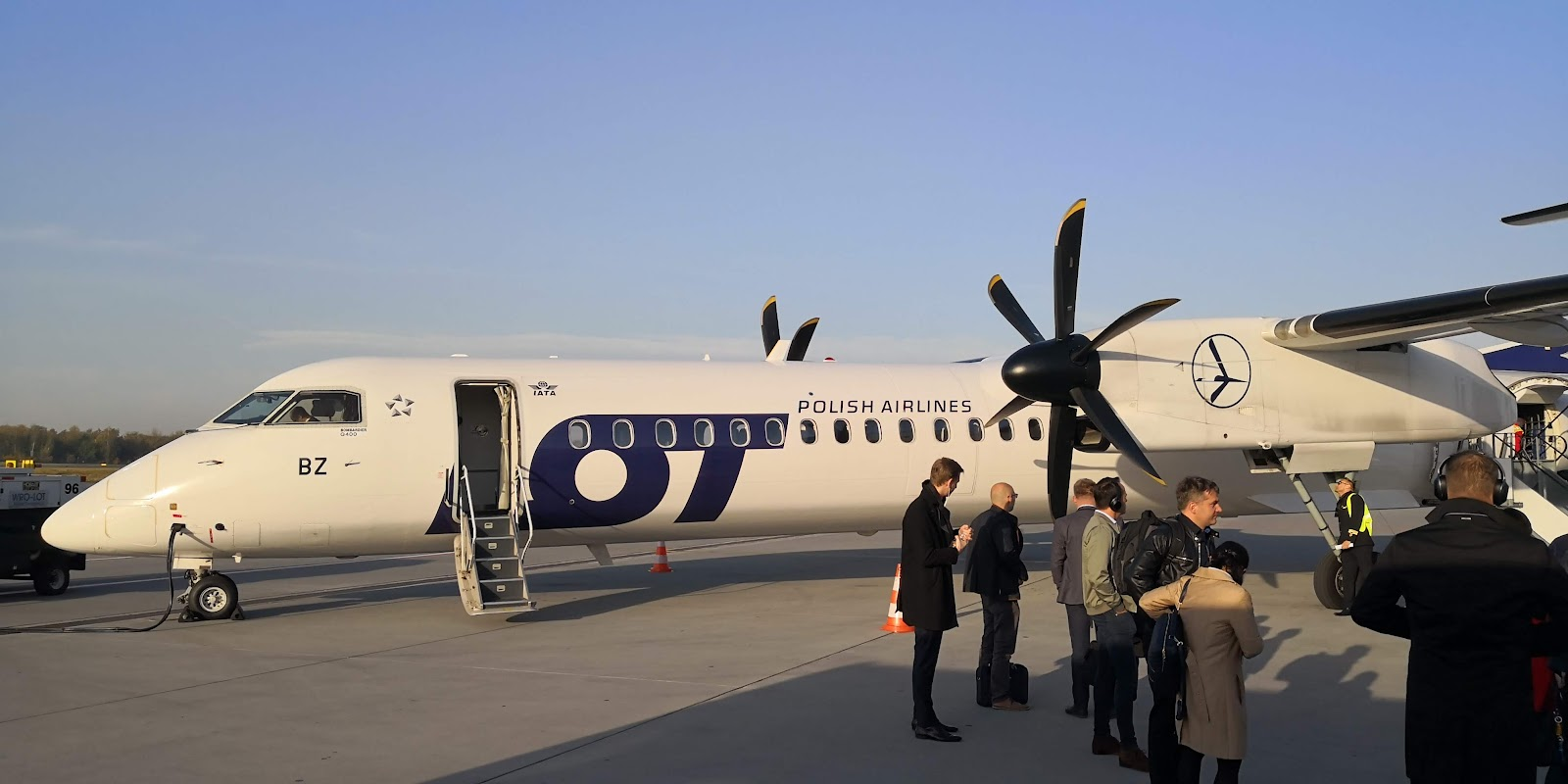 Як і минулого разу, я летів польською авіакомпанією LOT з пересадкою в Варшаві. З Варшави до Вроцлава літають невеликі літаки Bombardier з гвинтами на крилах (жартома називаю їх “кукурудзниками” 😊):